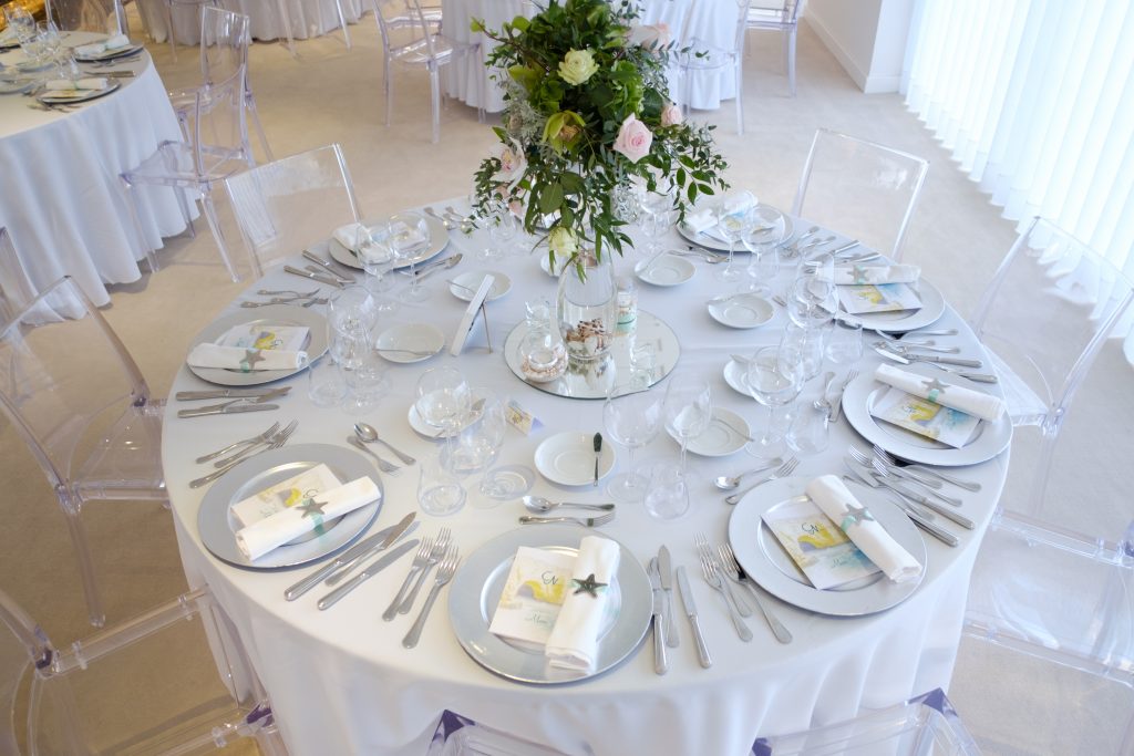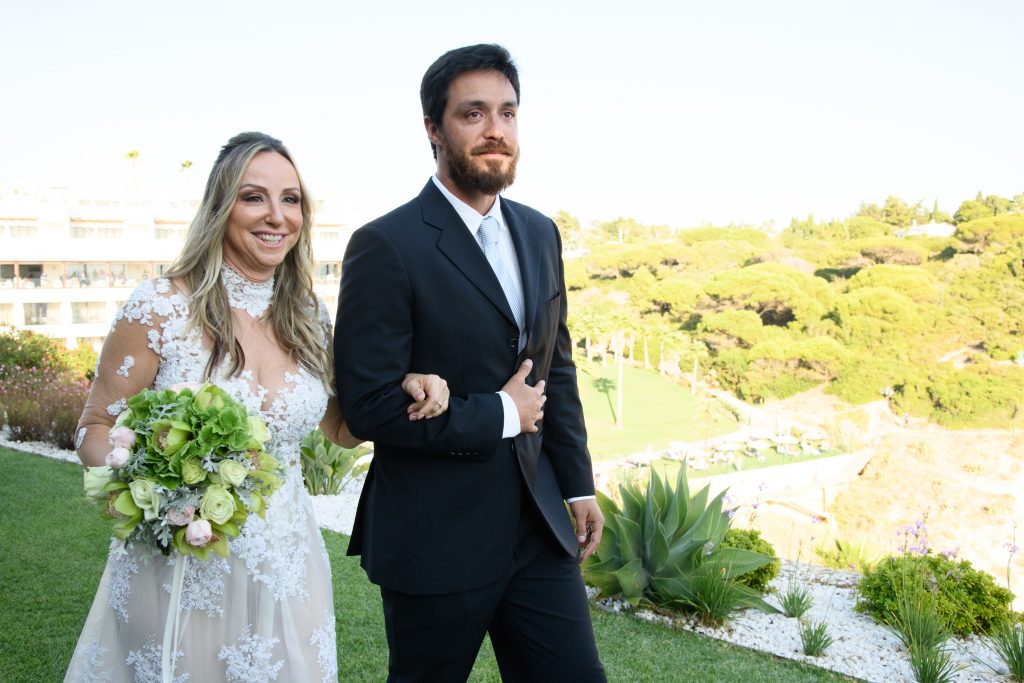 Juntamente com 70 convidados, celebraram num dos cenários mais encantadores do Algarve, o hotel Tivoli Carvoeiro. O tema mar e as praias algarvias tiveram seu destaque no design do copo-d´água.