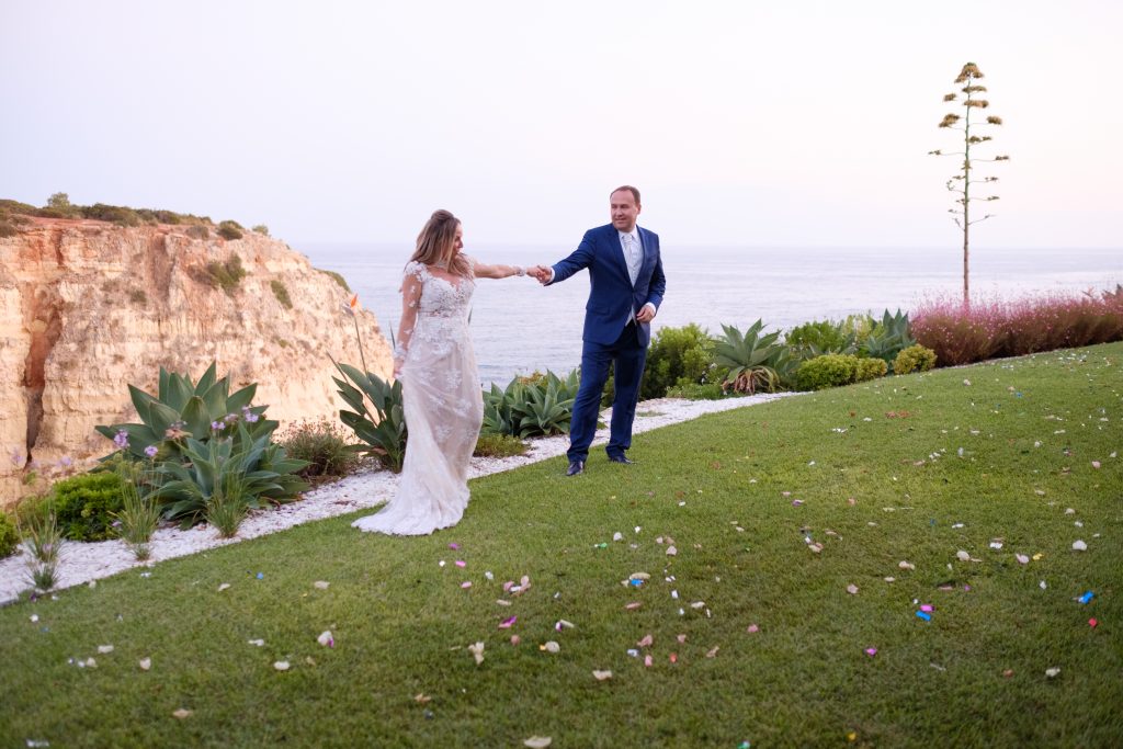 Cristina brasileira e Nuno português, vindos do Brasil, deram o nó em Setembro de 2018 em uma cerimónia ao ar livre numa bela falésia tendo como pano de fundo o mar.